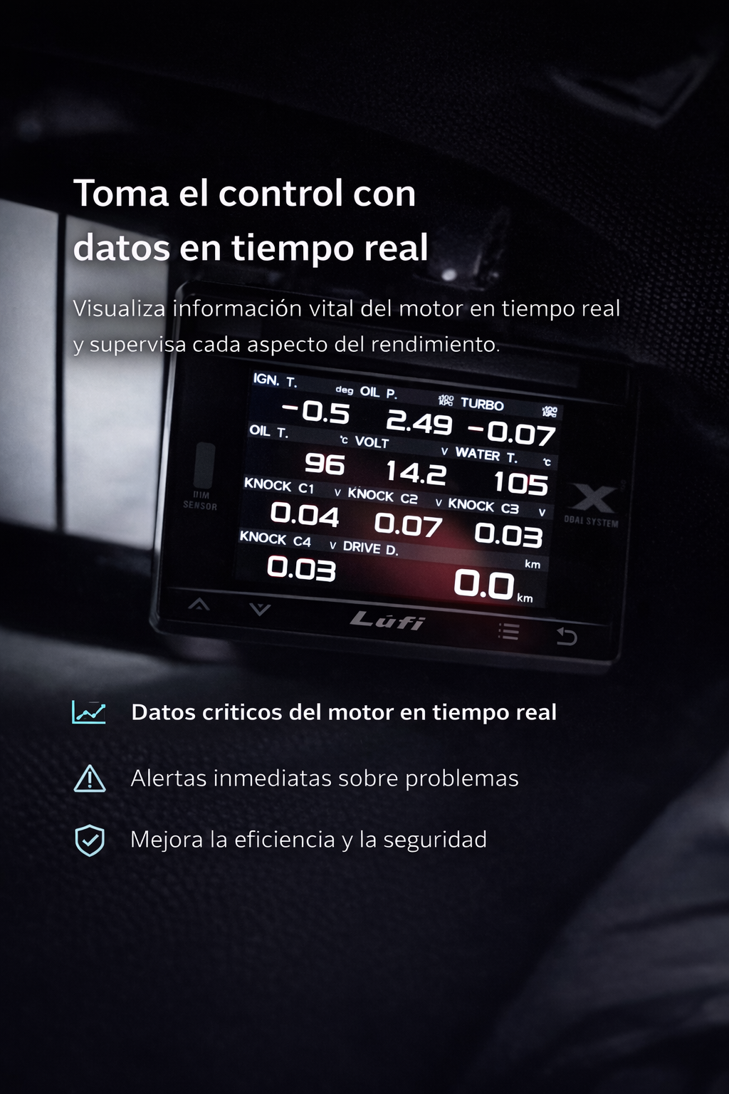 Lufi nace de una idea clara: Ofrecer pantallas digitales que aporten información real, útil y fiable al conductor. Desde el primer modelo, nuestro enfoque ha sido siempre el mismo: Desarrollar productos funcionales, bien diseñados y pensados para un uso real, sin artificios innecesarios.